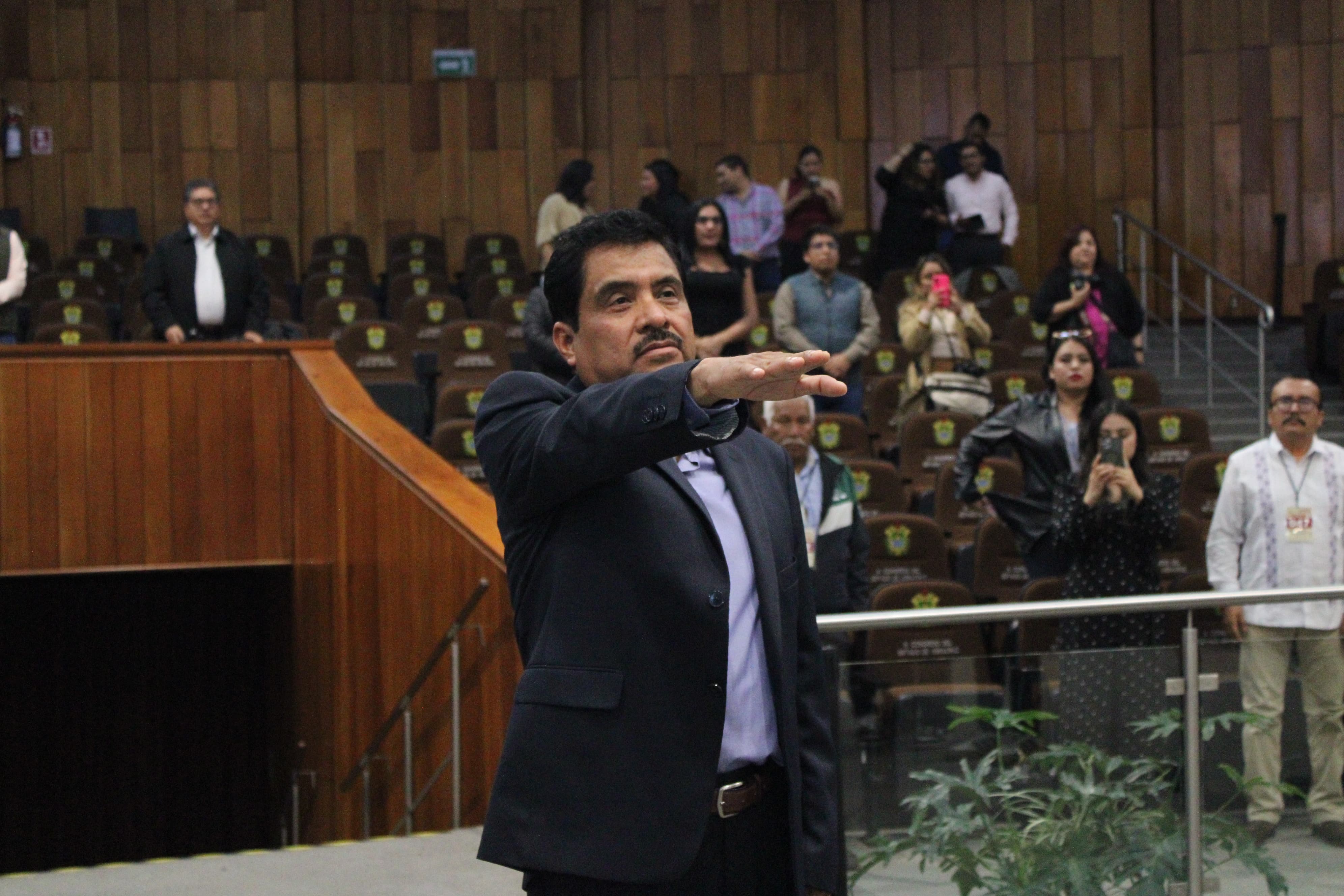 La presidenta de la Mesa Directiva, diputada Naomi Edith Gómez Santos, tomó la protesta de ley reglamentaria al ciudadano Édgar Díaz Fuentes y, acto seguido, le dio la bienvenida a los trabajos que se realizan al interior del Congreso local.