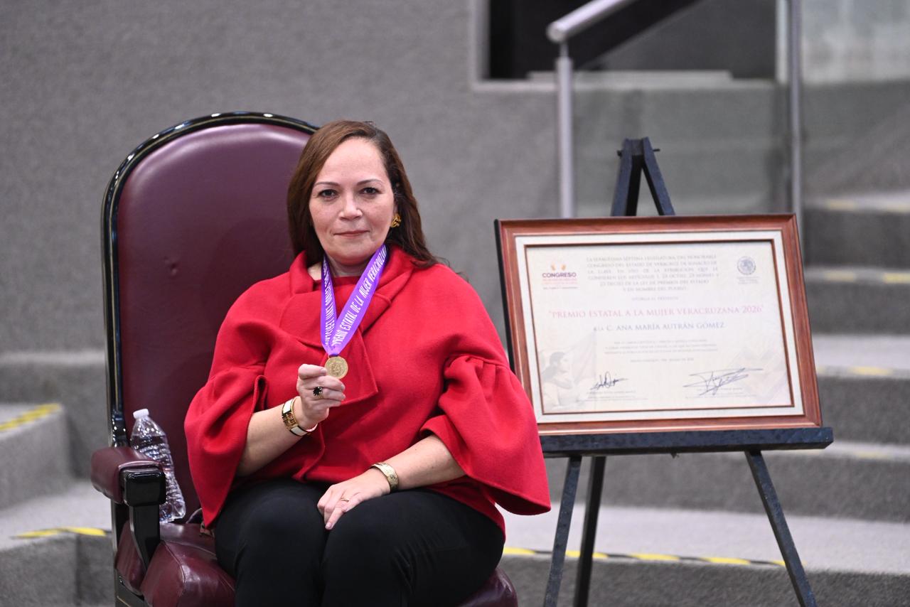 .- En Sesión Solemne, el Pleno de la LXVII Legislatura, la gobernadora del estado de Veracruz, Rocío Nahle García, y la presidenta del Poder Judicial de la entidad, magistrada Rosalba Hernández Hernández, entregaron la medalla Premio Estatal a la Mujer 2026 a la ciudadana Ana María Autrán Gómez en reconocimiento a su labor científica y práctica médica enfocadas a curar diferentes tipos de cáncer, a las que ha dado difusión mediante la publicación de artículos en revistas especializadas.